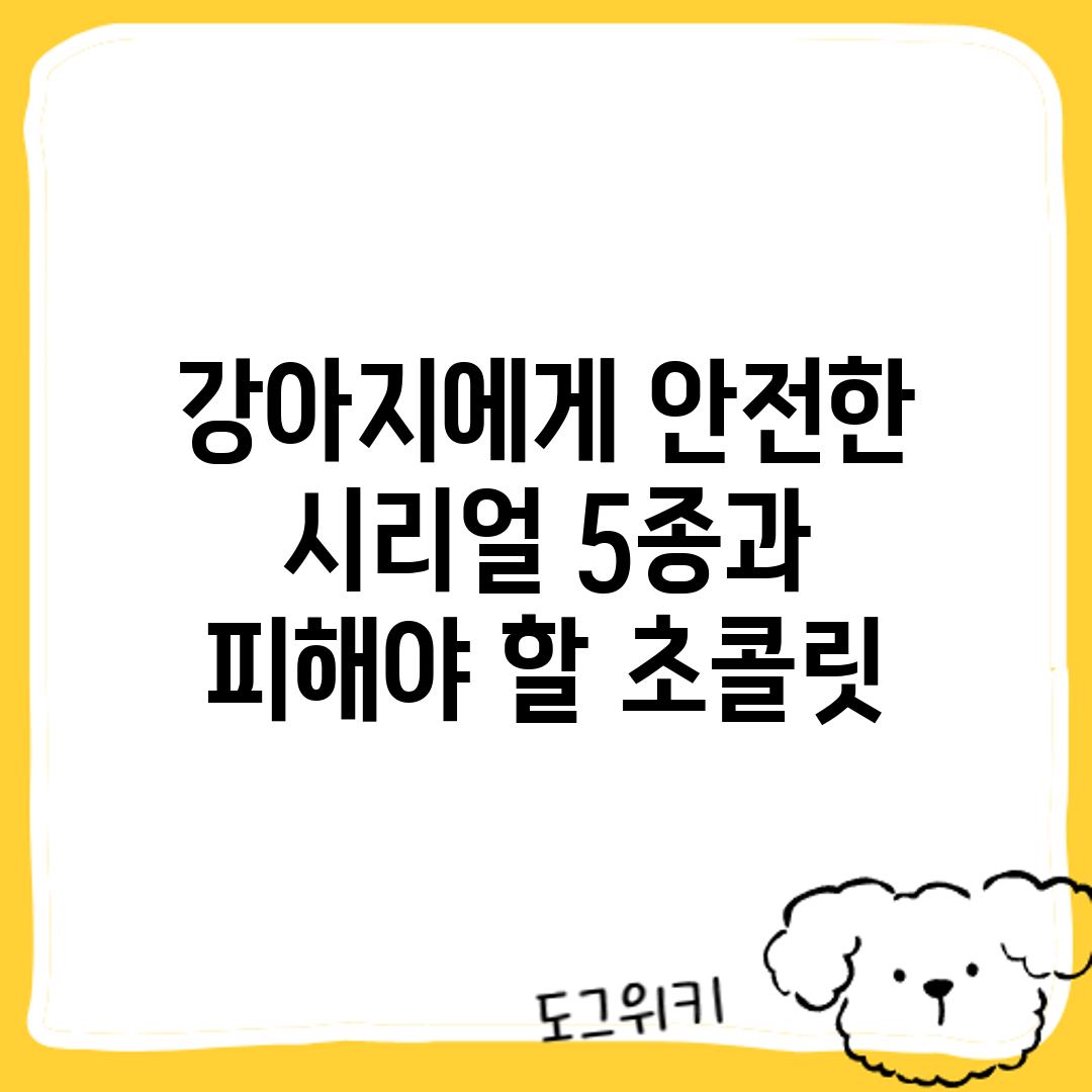 강아지를 위한 안전한 시리얼을 선택하는 것은 그들의 건강에 큰 영향을 미칩니다. 특히, 강아지가 먹을 수 있는 시리얼과 절대로 주면 안 되는 것들, 예를 들어 초콜릿 시리얼은 반드시 구분해야 합니다.